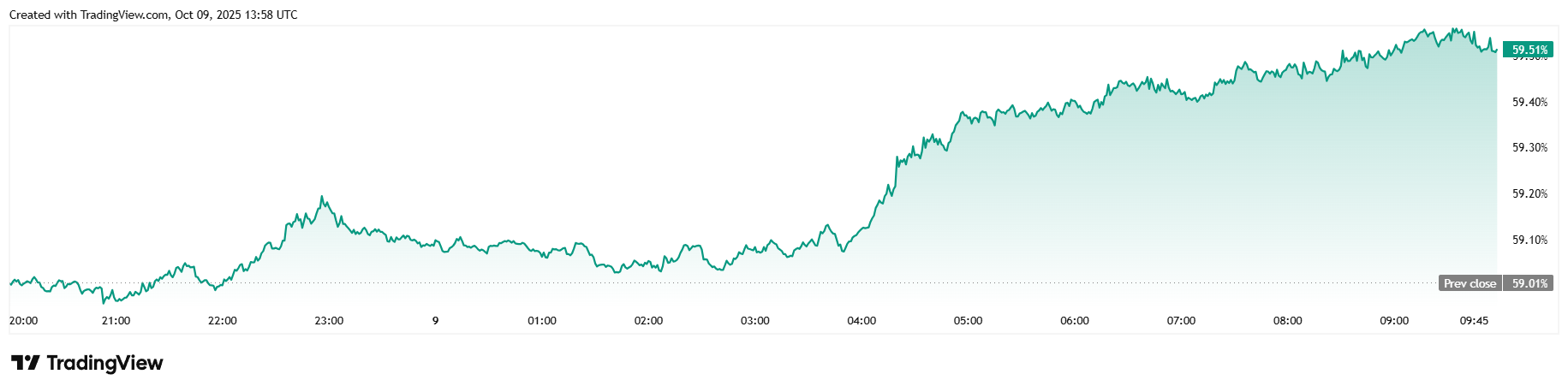 Двадцать четыре-часовой объем торгов упал на 23.73% до 61.13 миллиарда долларов, в то время как рыночная капитализация немного выросла на 0.11% до 2.44 триллиона долларов. Доминирование Bitcoin, всегда выставляющее себя напоказ, подскочило на 0.85% до 59.52%. 🦹♂️